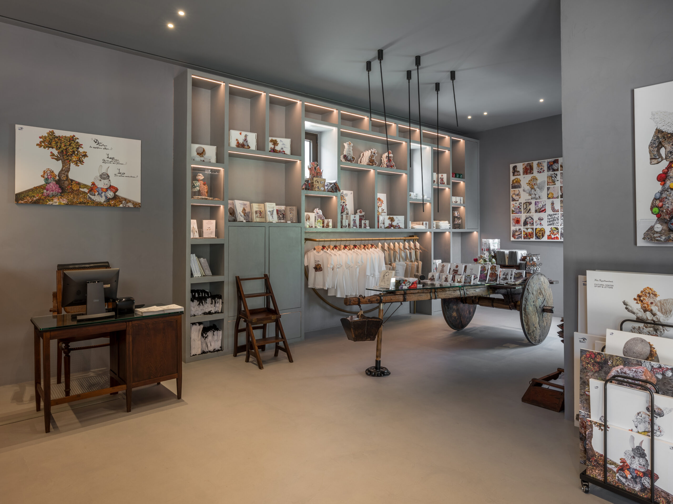 Το κατάστημα του Πολιτιστικού Κέντρου σας προσκαλεί να πάρετε μαζί σας ένα κομμάτι της εμπειρίας. Εδώ θα βρείτε προσεκτικά επιλεγμένα αντικείμενα εμπνευσμένα από τη μόνιμη συλλογή και τη φιλοσοφία της δημιουργού. Από χρηστικά αντικείμενα και είδη γραφής, μέχρι κοσμήματα, εκδόσεις και καλλιτεχνικά αναμνηστικά.