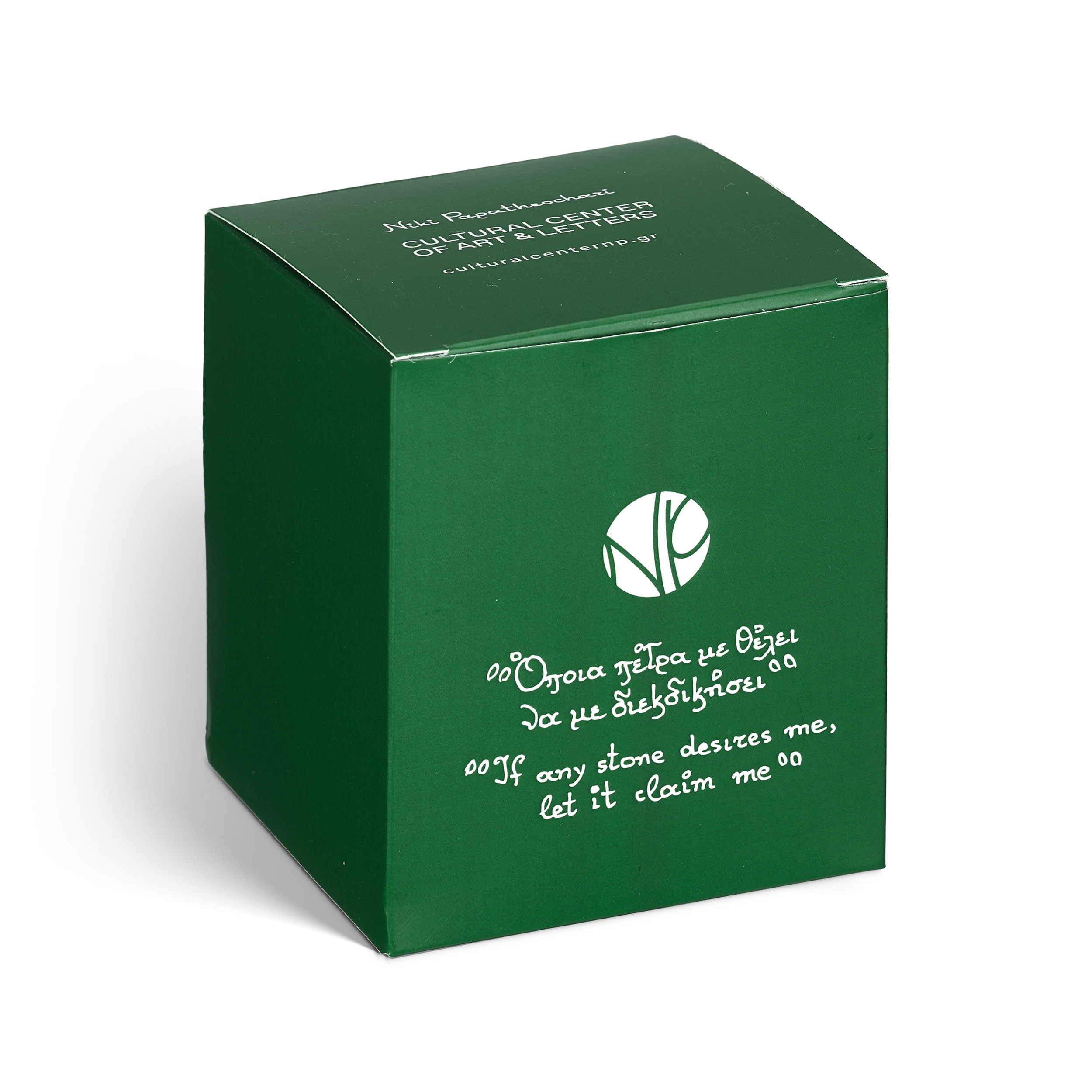 Κερί Πράσινο με θέμα “Όποια πέτρα με θέλει να με διεκδικήσει”. Άρωμα σανταλόξυλο