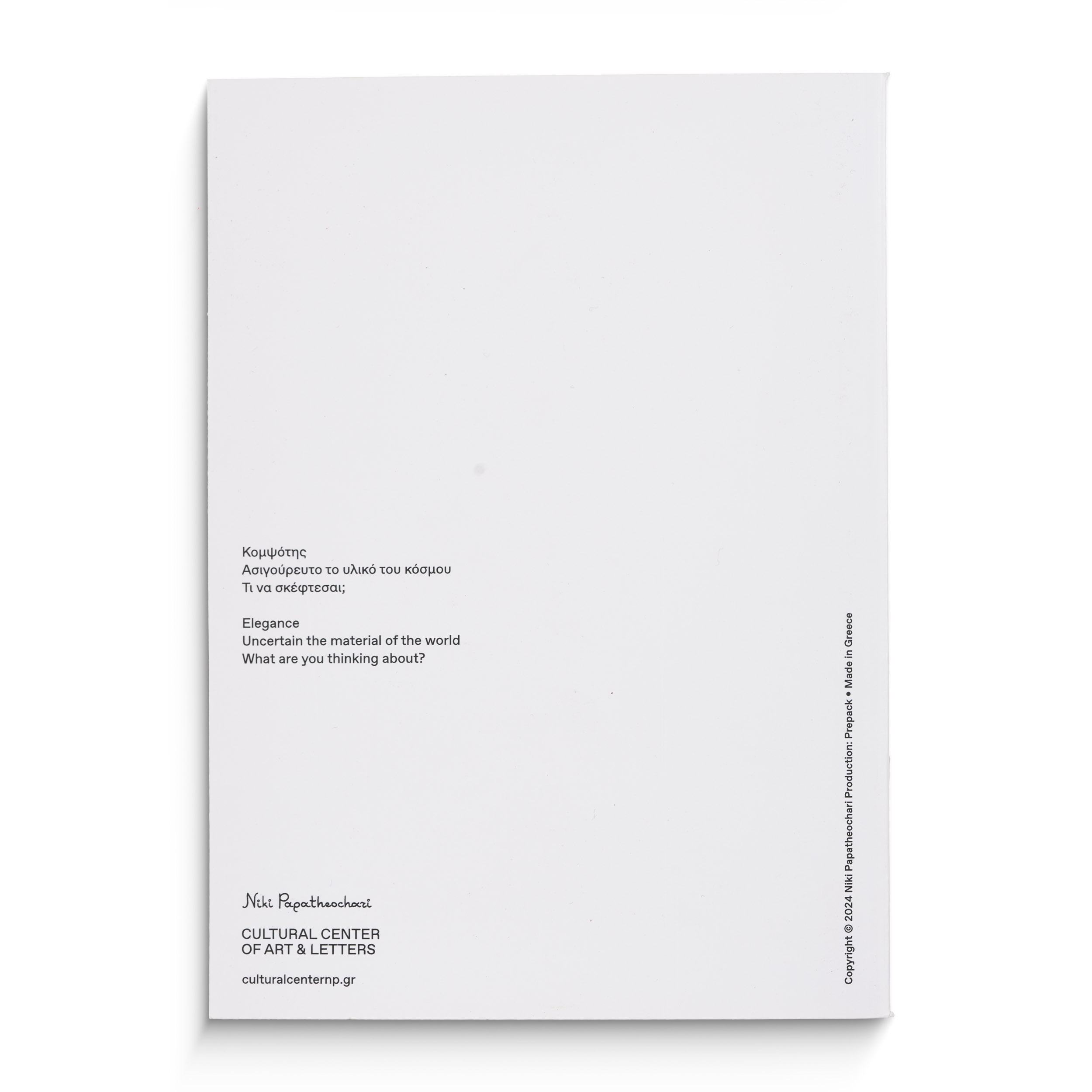 Τετράδιο με λευκές σελίδες εσωτερικά και τοπικό UV στο εξώφυλλο με θέμα την Κομψότης
